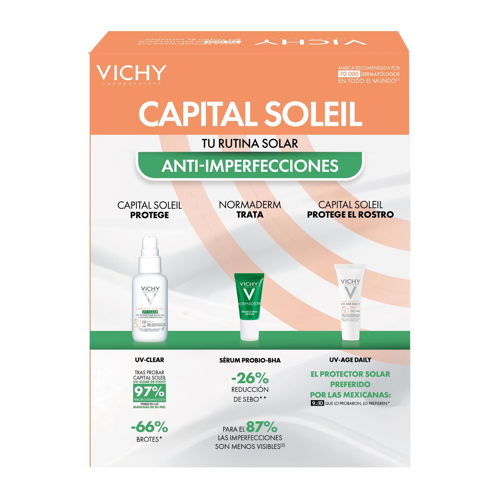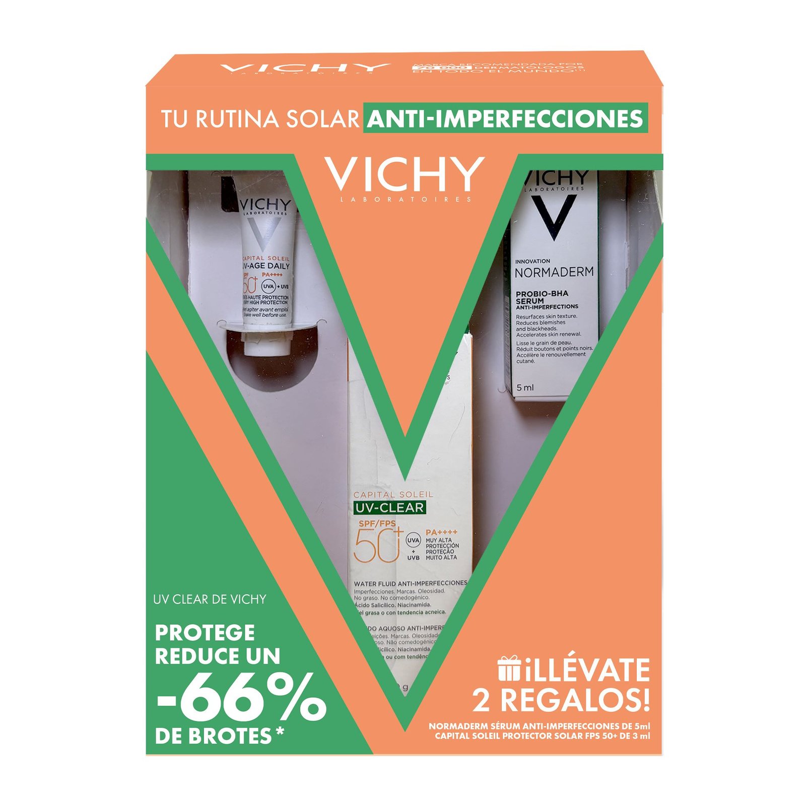 +EnvíoProtector solar con FPS 50+ para pieles grasas o con tendencia acnéica. Protector Solar Uv Clear + Serum Normaderm+ Mini Uv Age Protector Solar